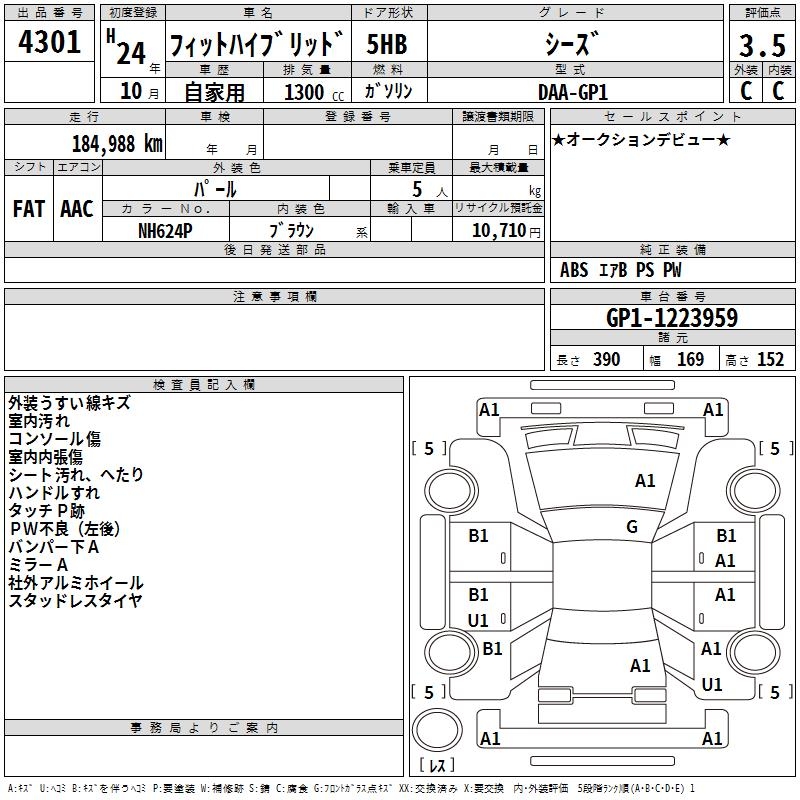 HONDA FIT HYBRID - лот 4301
