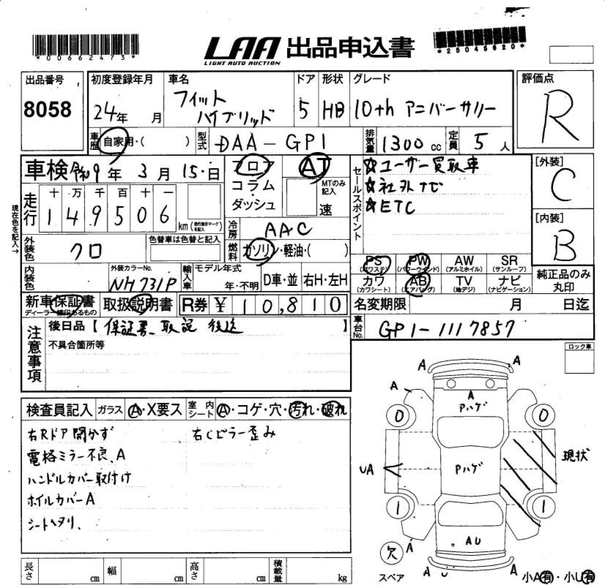 HONDA FIT HYBRID - лот 8058