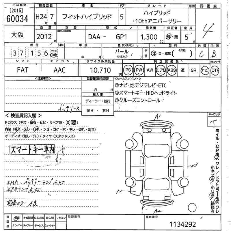 HONDA FIT HYBRID - лот 60034