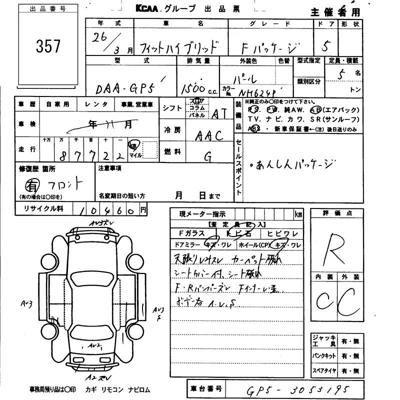HONDA FIT HYBRID - лот 357