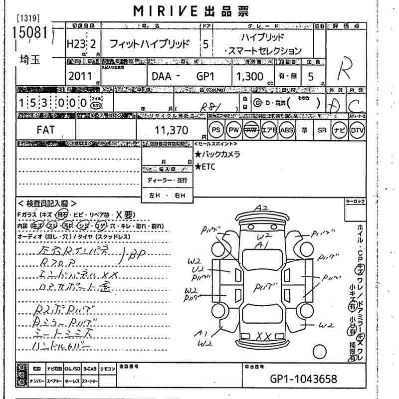 HONDA FIT HYBRID - лот 15081