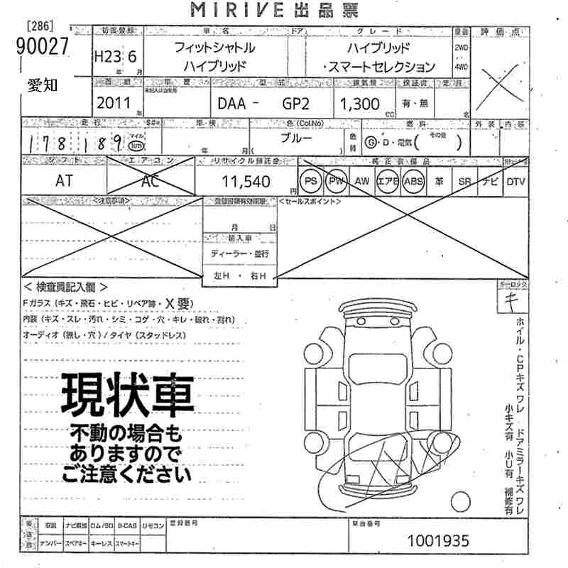 Все аукционы HONDA FIT SHUTTLE HYBRID