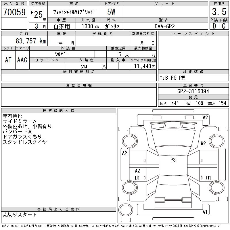 HONDA FIT SHUTTLE HYBRID - лот 70059