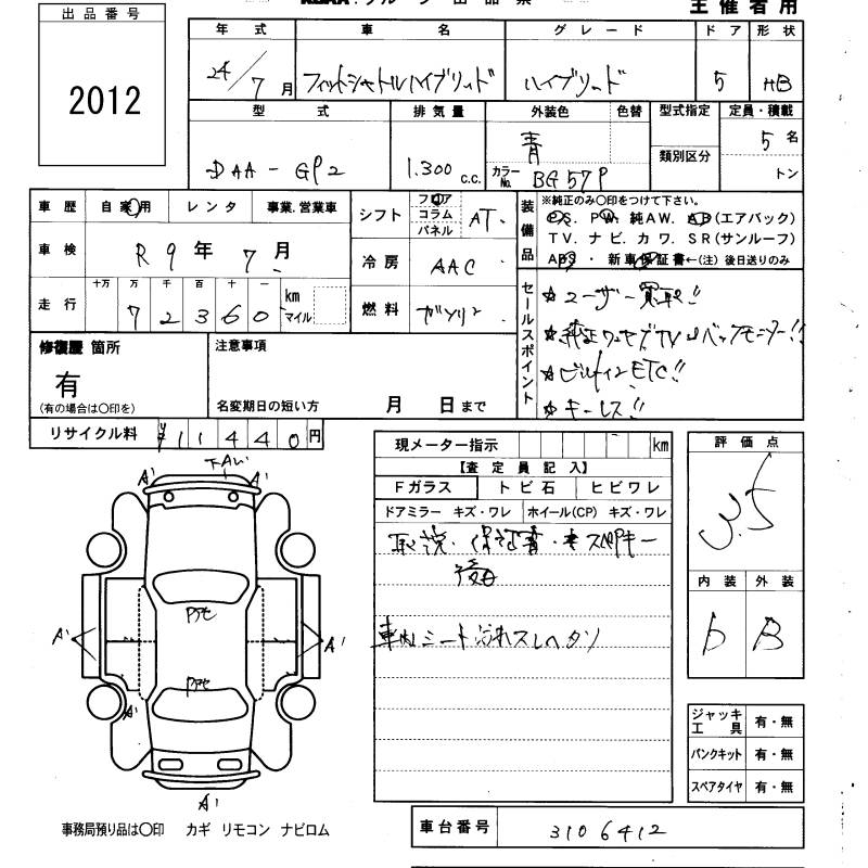 HONDA FIT SHUTTLE HYBRID - лот 2012
