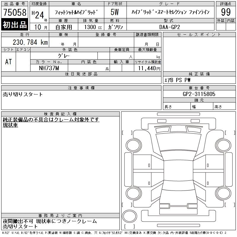 Все аукционы HONDA FIT SHUTTLE HYBRID