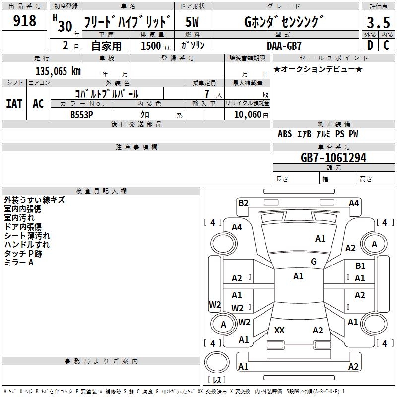 HONDA FREED HYBRID - лот 918