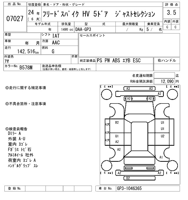 HONDA FREED SPIKE - лот 7027