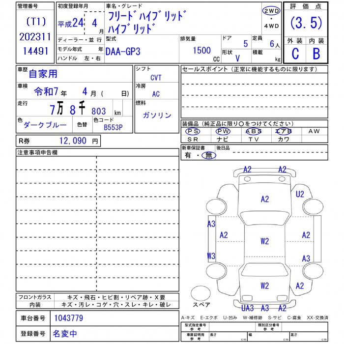 Все аукционы HONDA FREED HYBRID