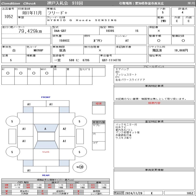 HONDA FREED+ - лот 1052