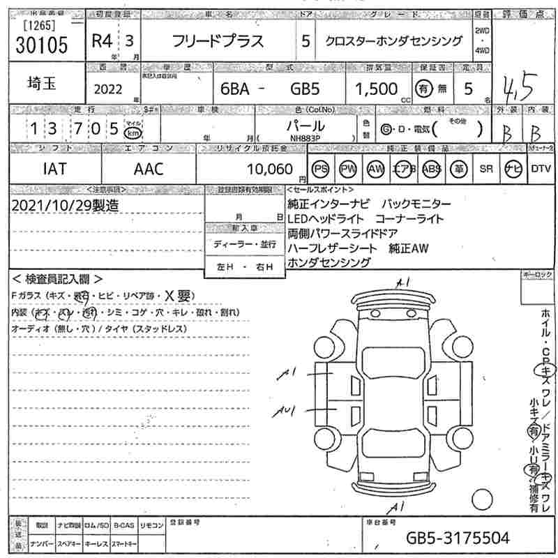 HONDA FREED+ CROSS MANY - HONDA SENSING - лот 30105