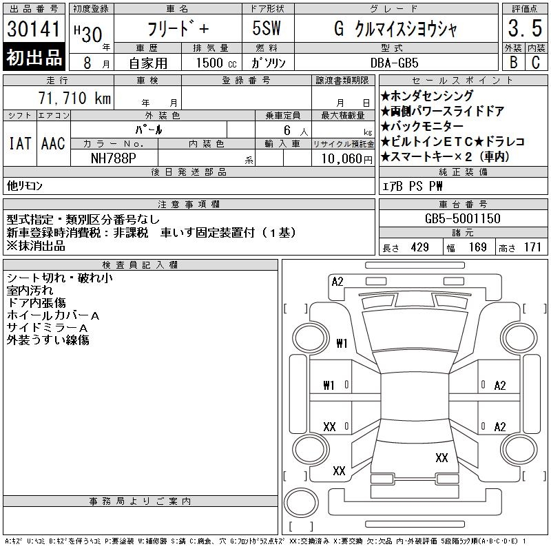 HONDA FREED+ GKRU MY S USE CAR - лот 30141