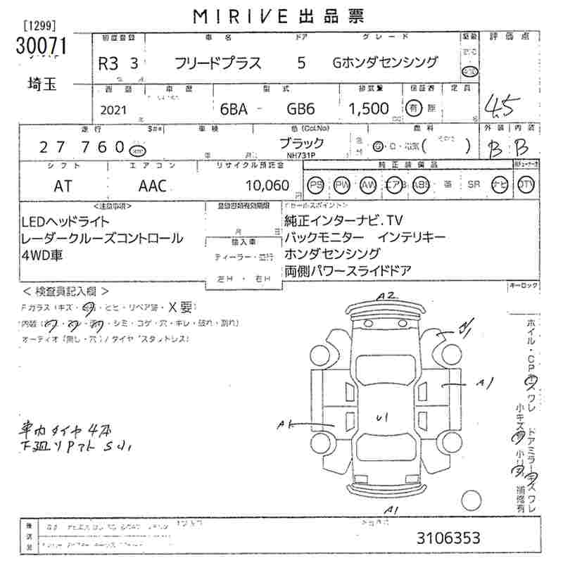 HONDA FREED+ G HONDA SENSING - лот 30071