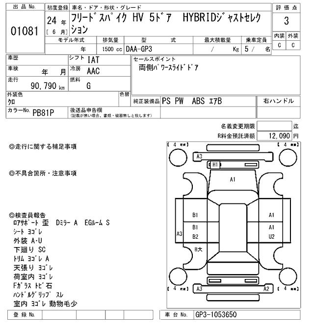 HONDA FREED SPIKE - лот 1081