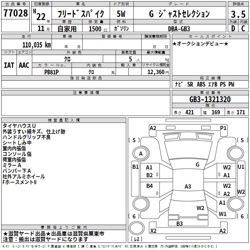 HONDA FREED SPIKE G JUST SELECTION - лот 77028