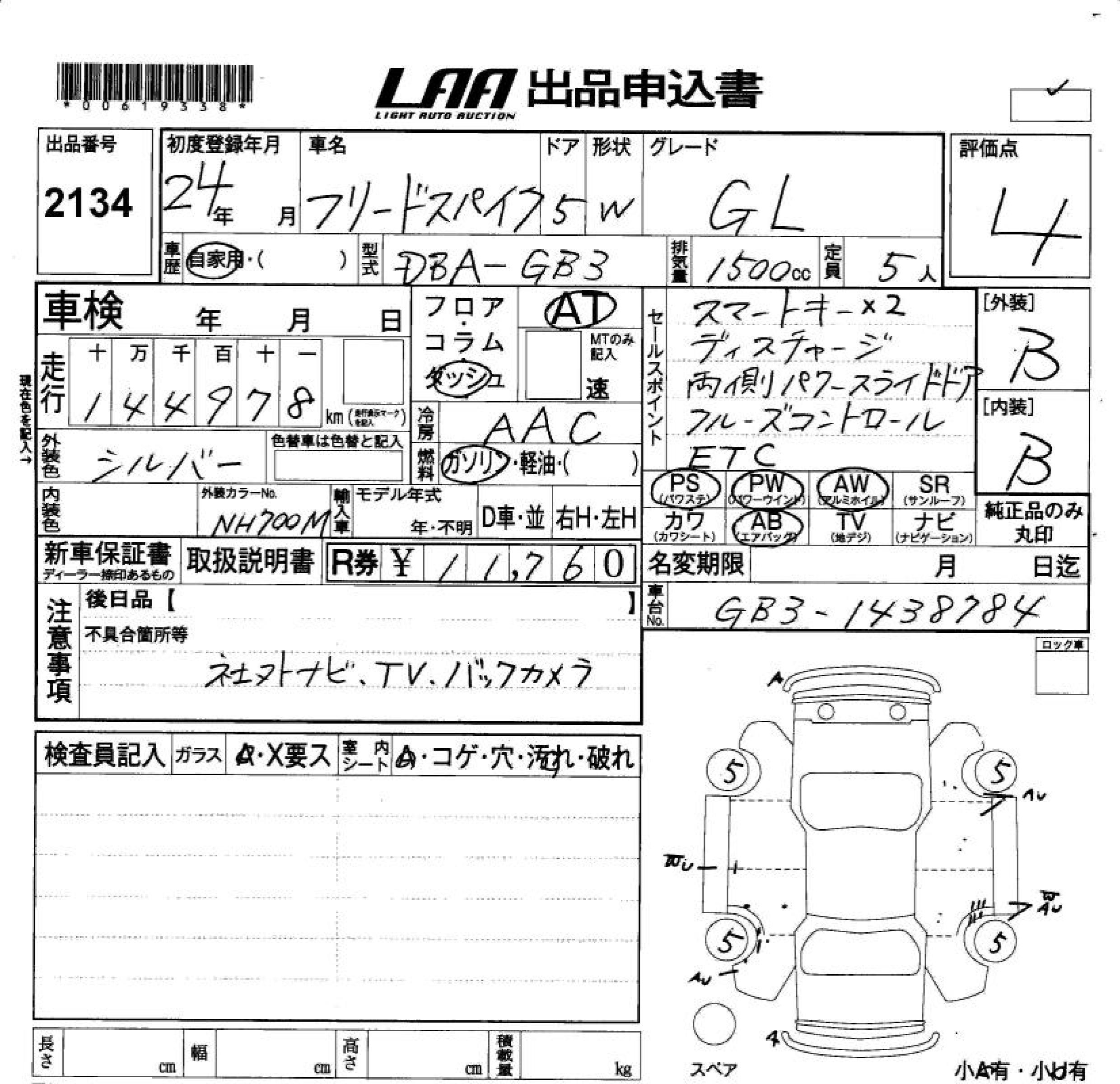 HONDA FREED SPIKE GL - лот 2134