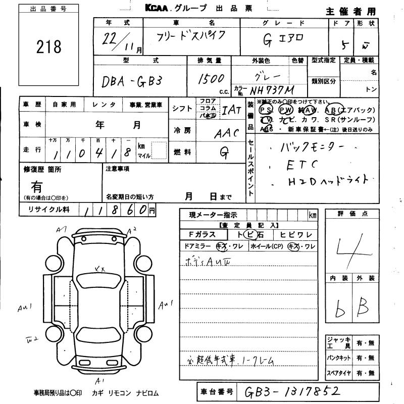 HONDA FREED SPIKE G AERO - лот 218