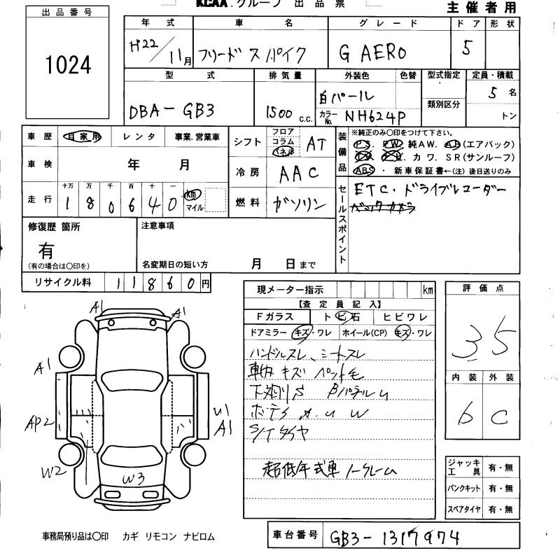 HONDA FREED SPIKE G AERO - лот 1024