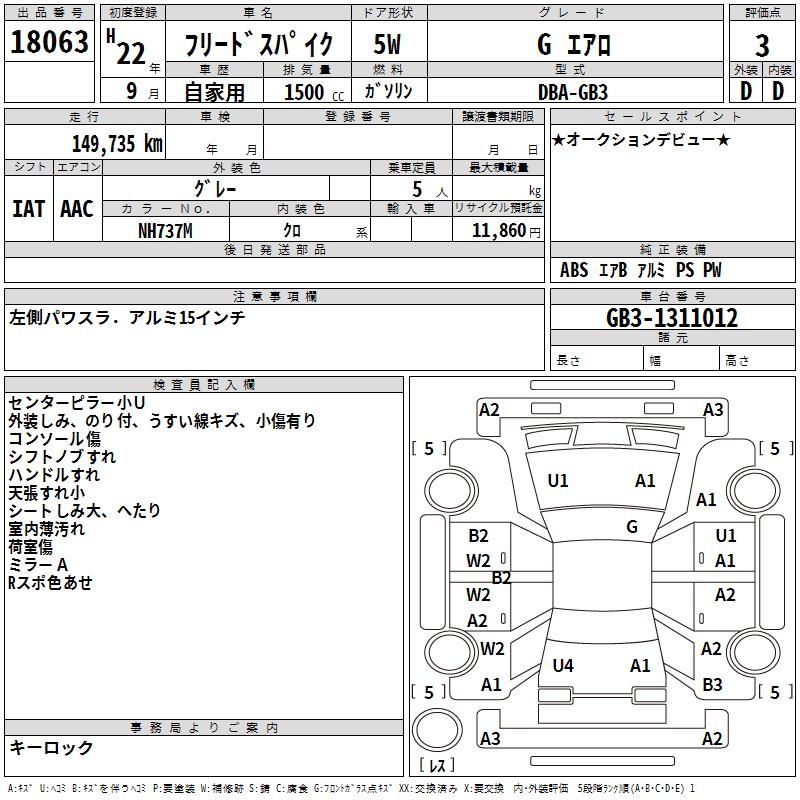 HONDA FREED SPIKE G AERO - лот 18063