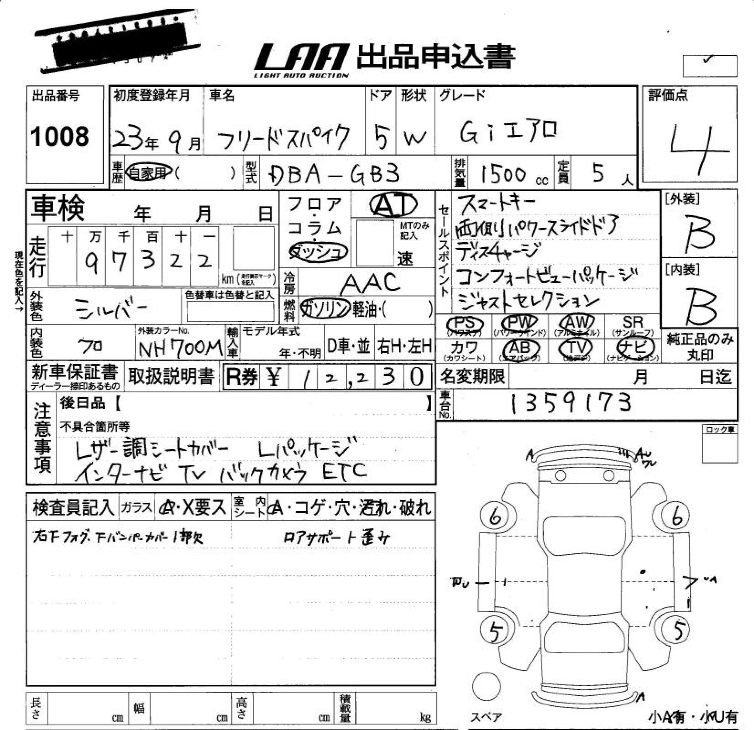 HONDA FREED SPIKE GI AERO - лот 1008