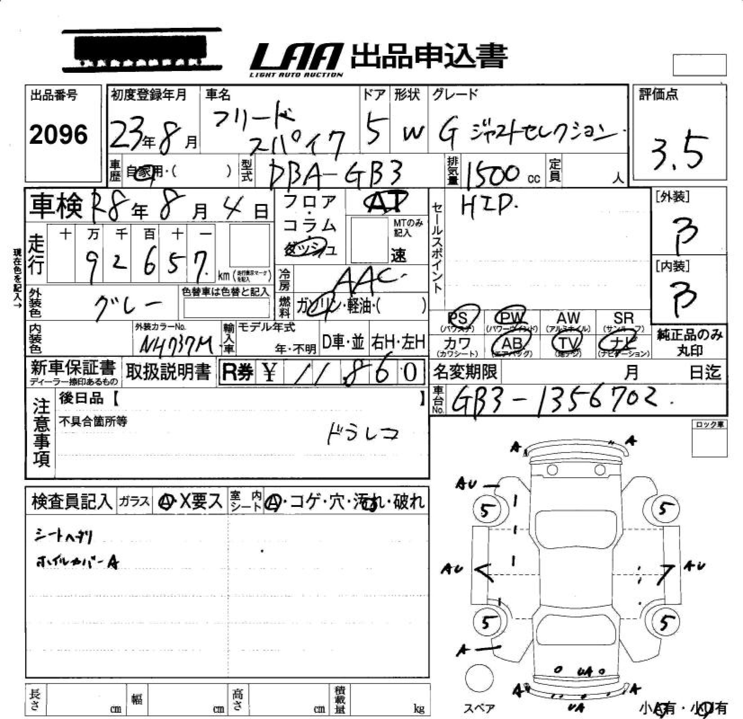 HONDA FREED SPIKE G JUST SELECTION - лот 2096