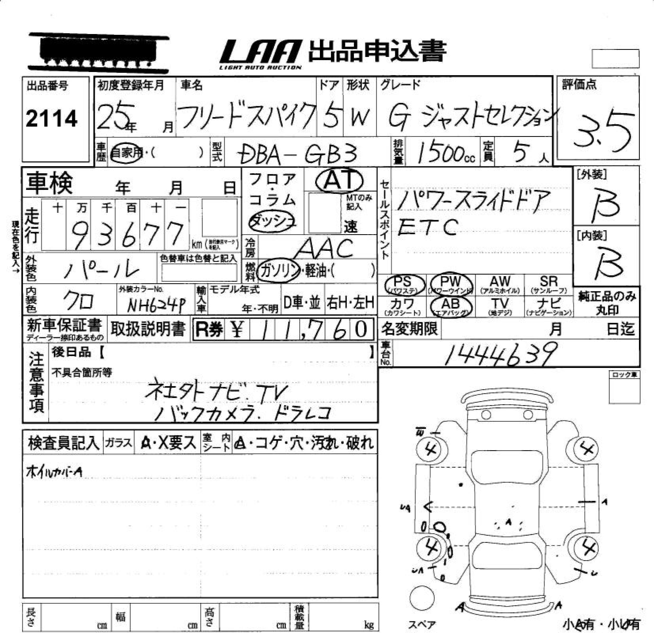 HONDA FREED SPIKE G JUST SELECTION - лот 2114