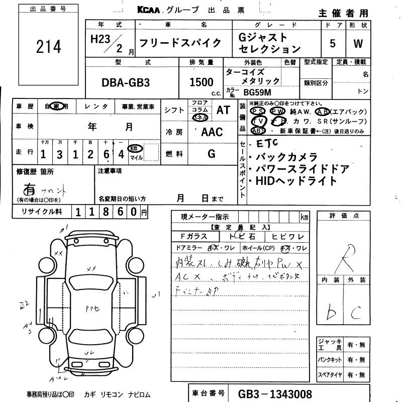 HONDA FREED SPIKE - лот 214