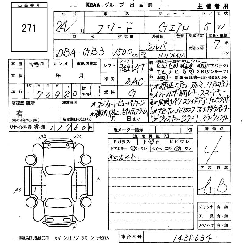 HONDA FREED - лот 271
