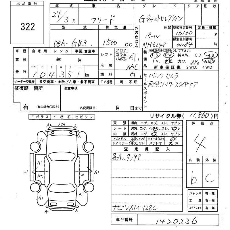 HONDA FREED - лот 322