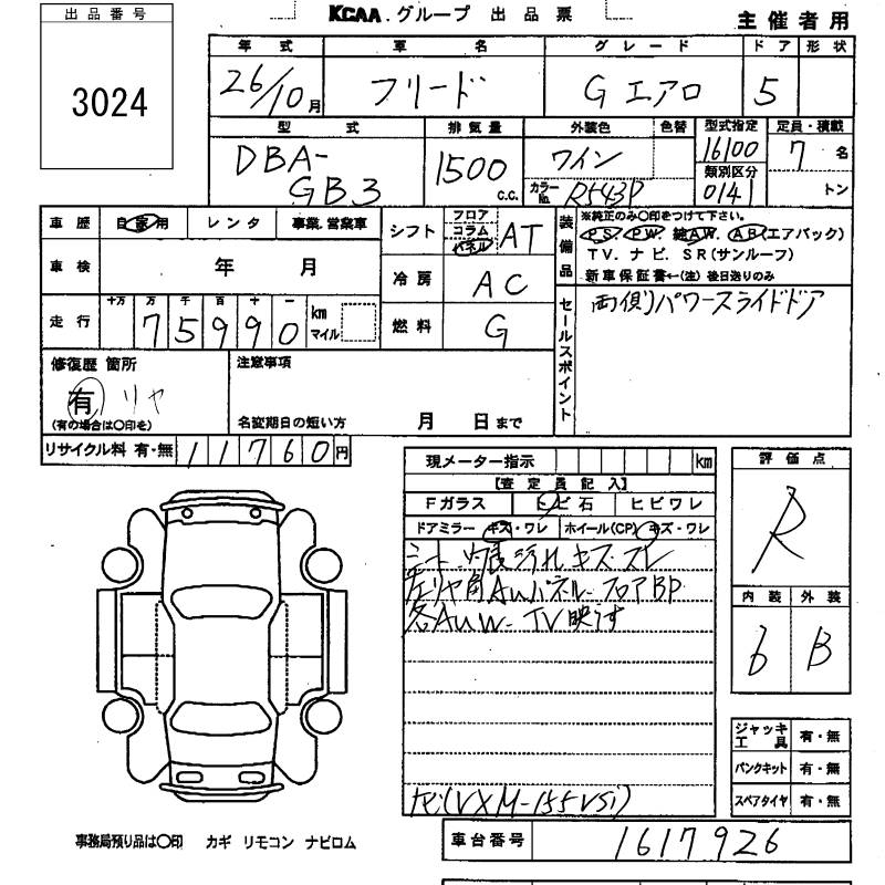 HONDA FREED - лот 3024