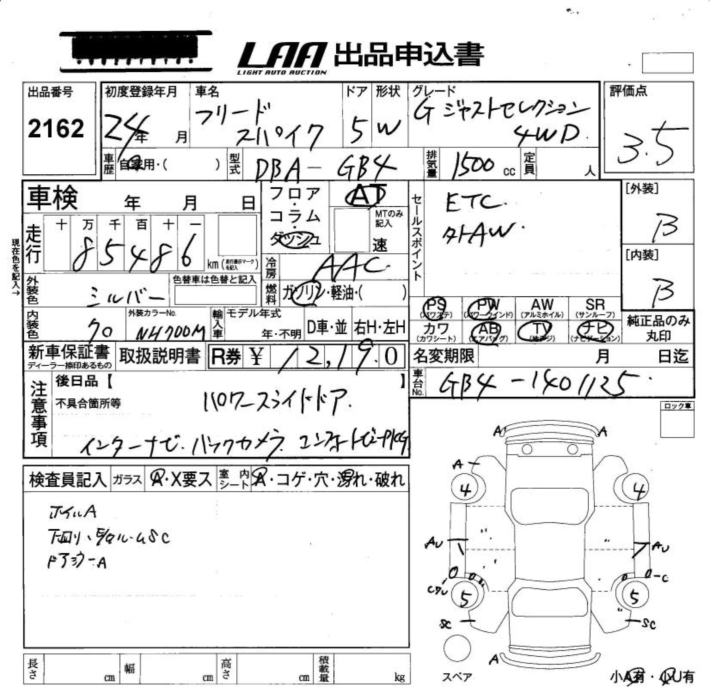 HONDA FREED - лот 2162