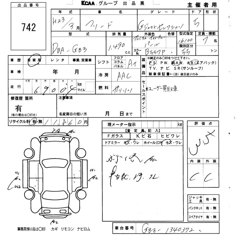 HONDA FREED - лот 742