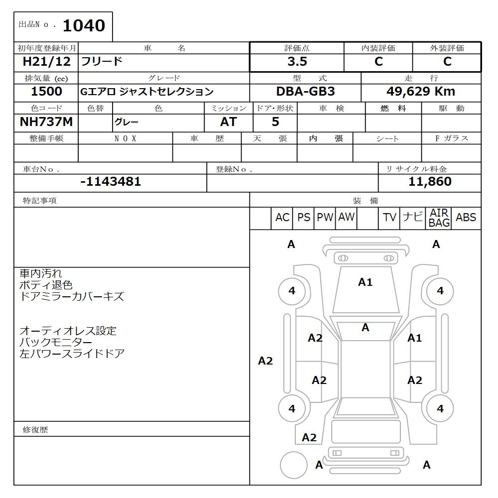 HONDA FREED - лот 1040