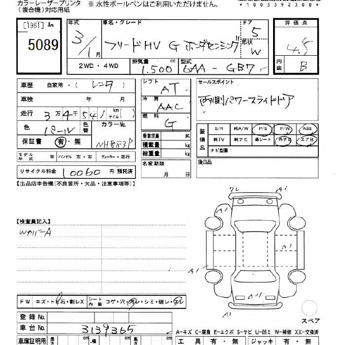 HONDA FREED - лот 5089