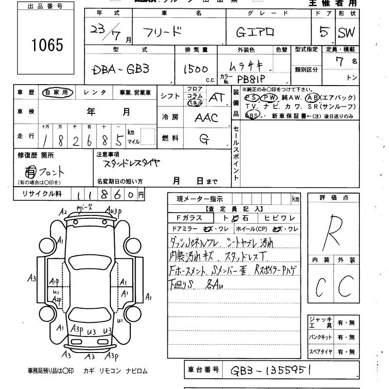 HONDA FREED - лот 1065