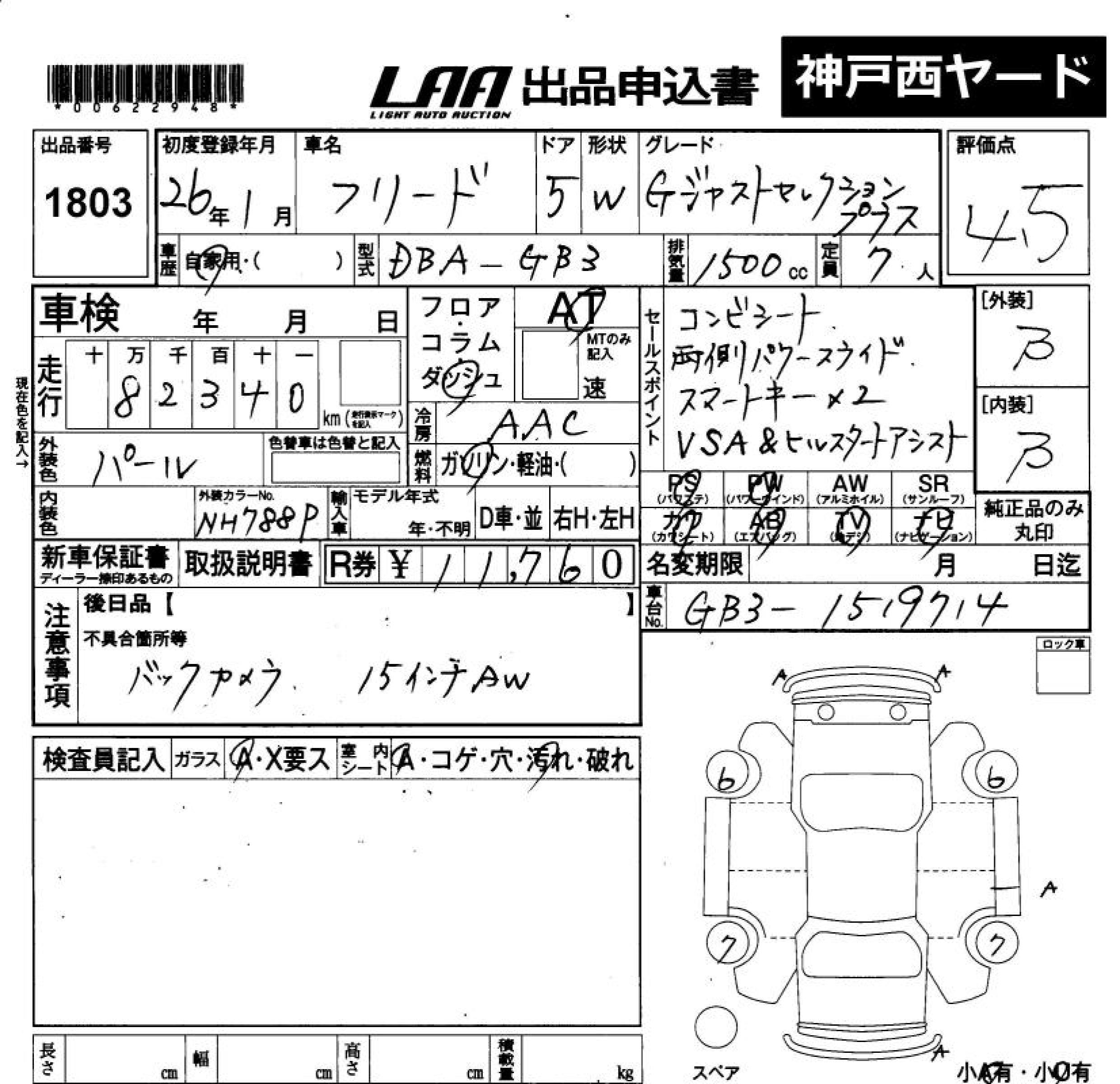 HONDA FREED - лот 1803