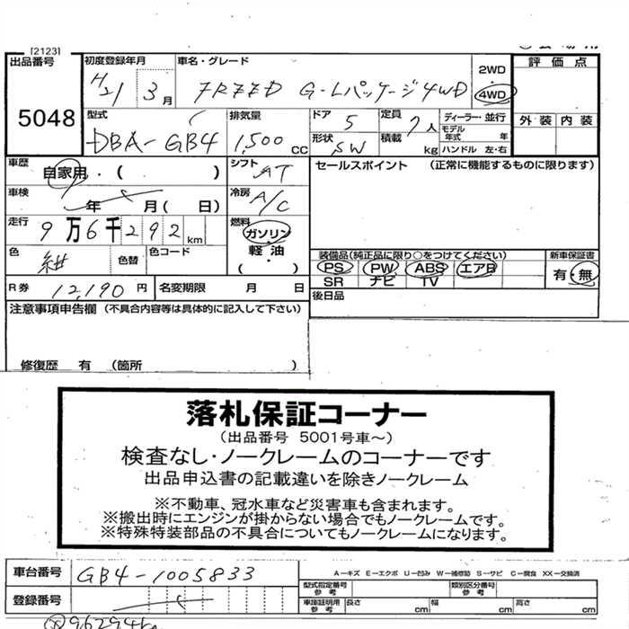 Все аукционы HONDA FREED