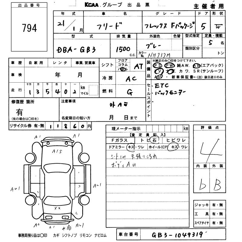 HONDA FREED - лот 794