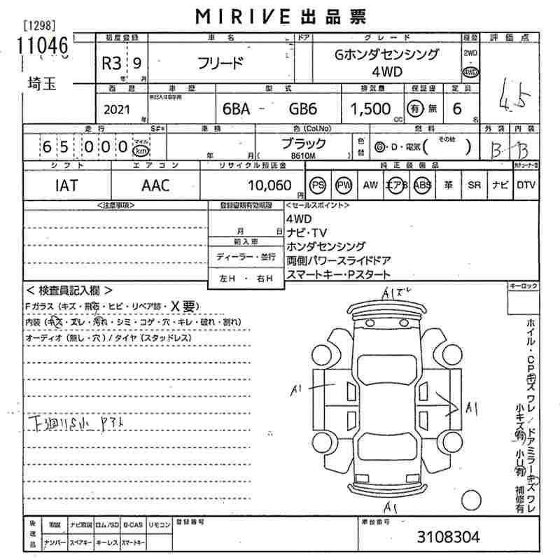 HONDA FREED G HONDA SENSING4WD - лот 11046