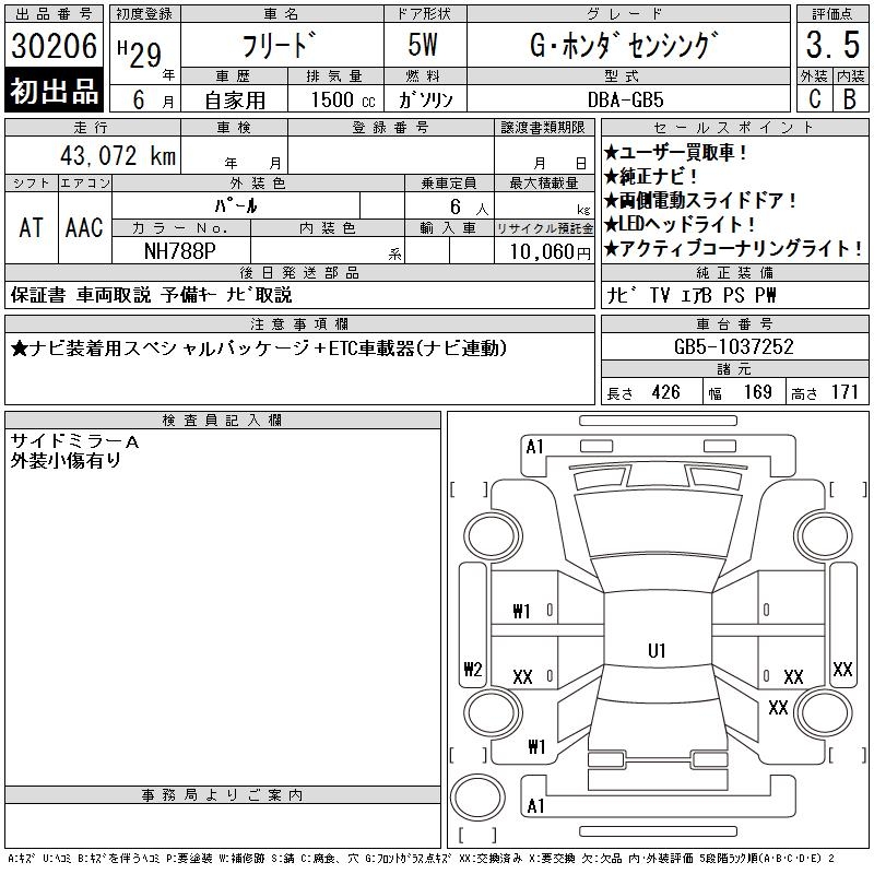 HONDA FREED G HONDA SENSING - лот 30206