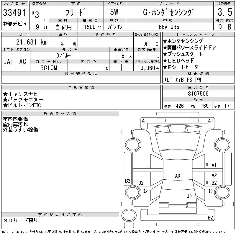 HONDA FREED G HONDA SENSING - лот 33491