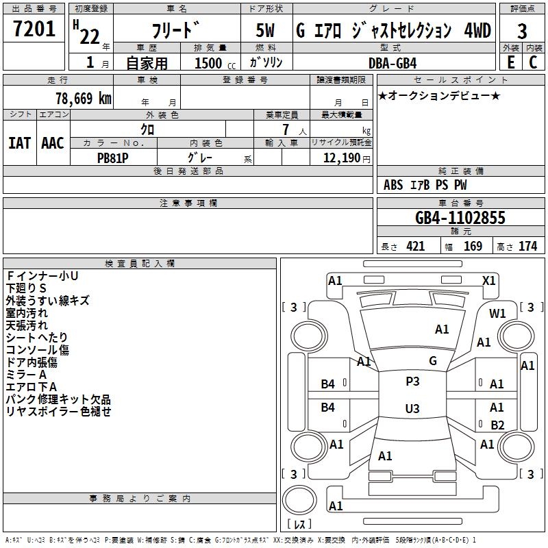HONDA FREED G AERO JUST SELECTION 4WD - лот 7201