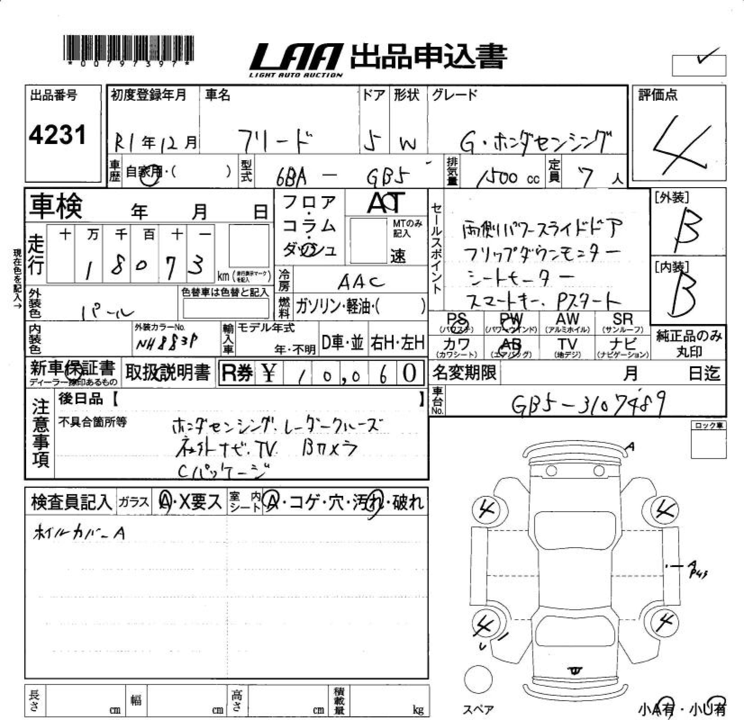 HONDA FREED G* HONDA SENSING - лот 4231