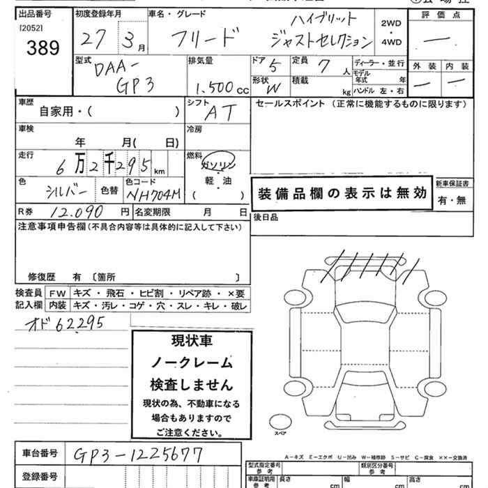 HONDA FREED HYBRID JUST SELECTION - лот 389