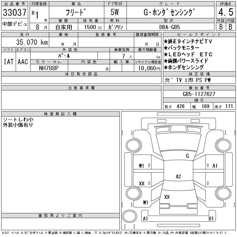 HONDA FREED G HONDA SENSING - лот 33037