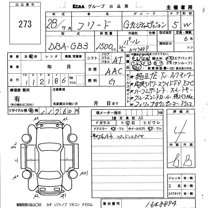 HONDA FREED G PREMIUM EDITION - лот 273