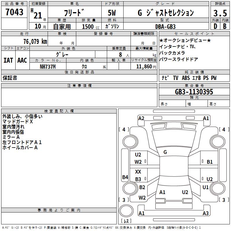 HONDA FREED G JUST SELECTION - лот 7043