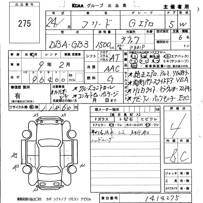 HONDA FREED G AERO - лот 275