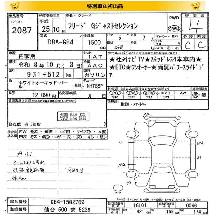 HONDA FREED 4WD G JUST SELECTION - лот 2087