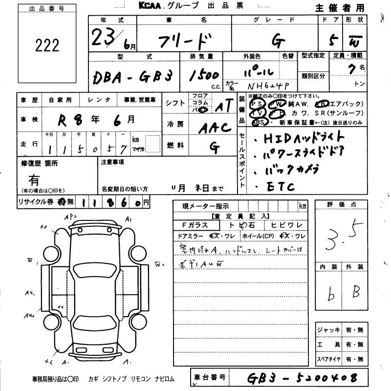HONDA FREED G - лот 222