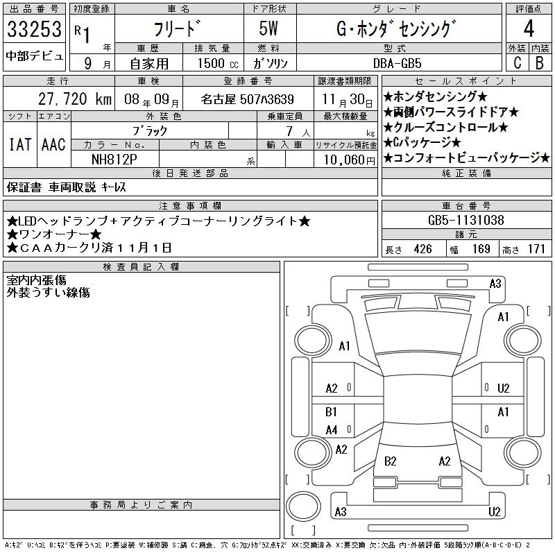 HONDA FREED G HONDA SENSING - лот 33253